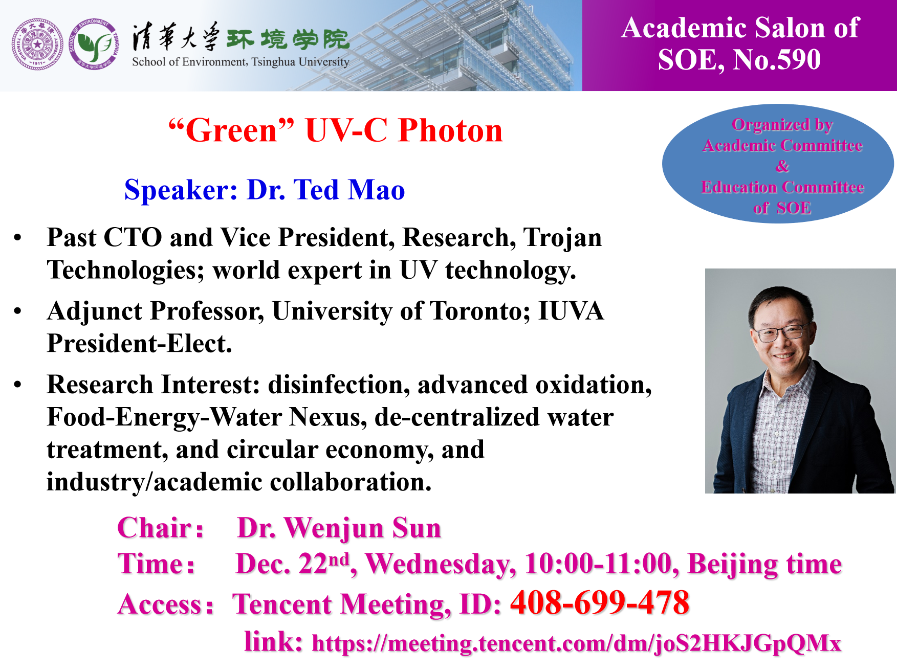 报告人:Ted Mao, Adjunct Professor, University of Toronto/ IUVA President-Elect