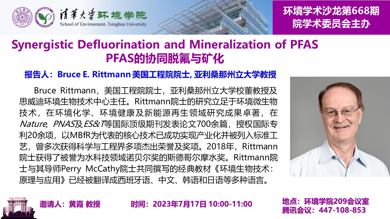 报告人:Bruce E. Rittmann 美国工程院院士, 亚利桑那州立大学教授