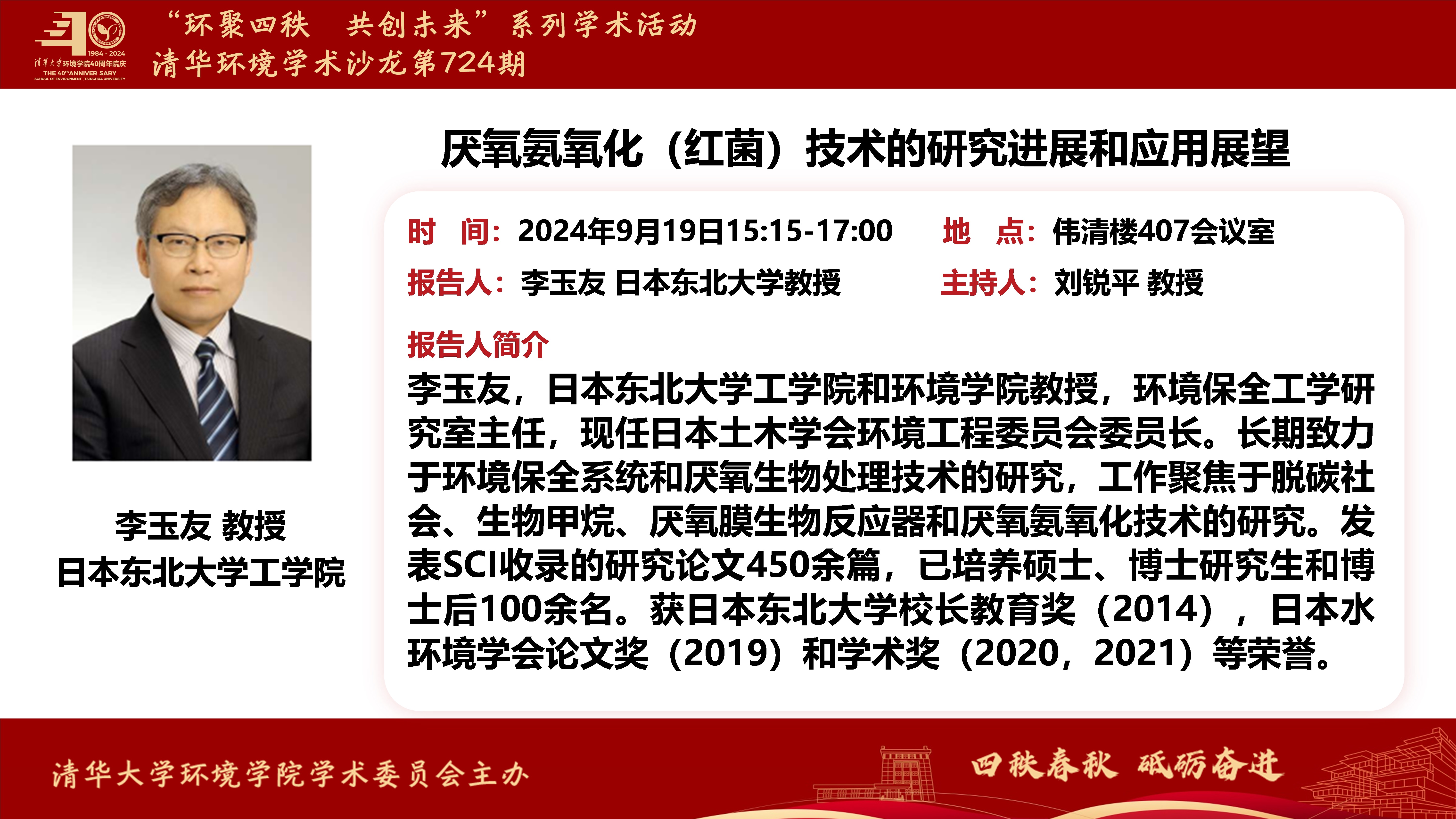 报告人:李玉友,日本东北大学工学院和环境学院教授,环境保全工学研究室主任