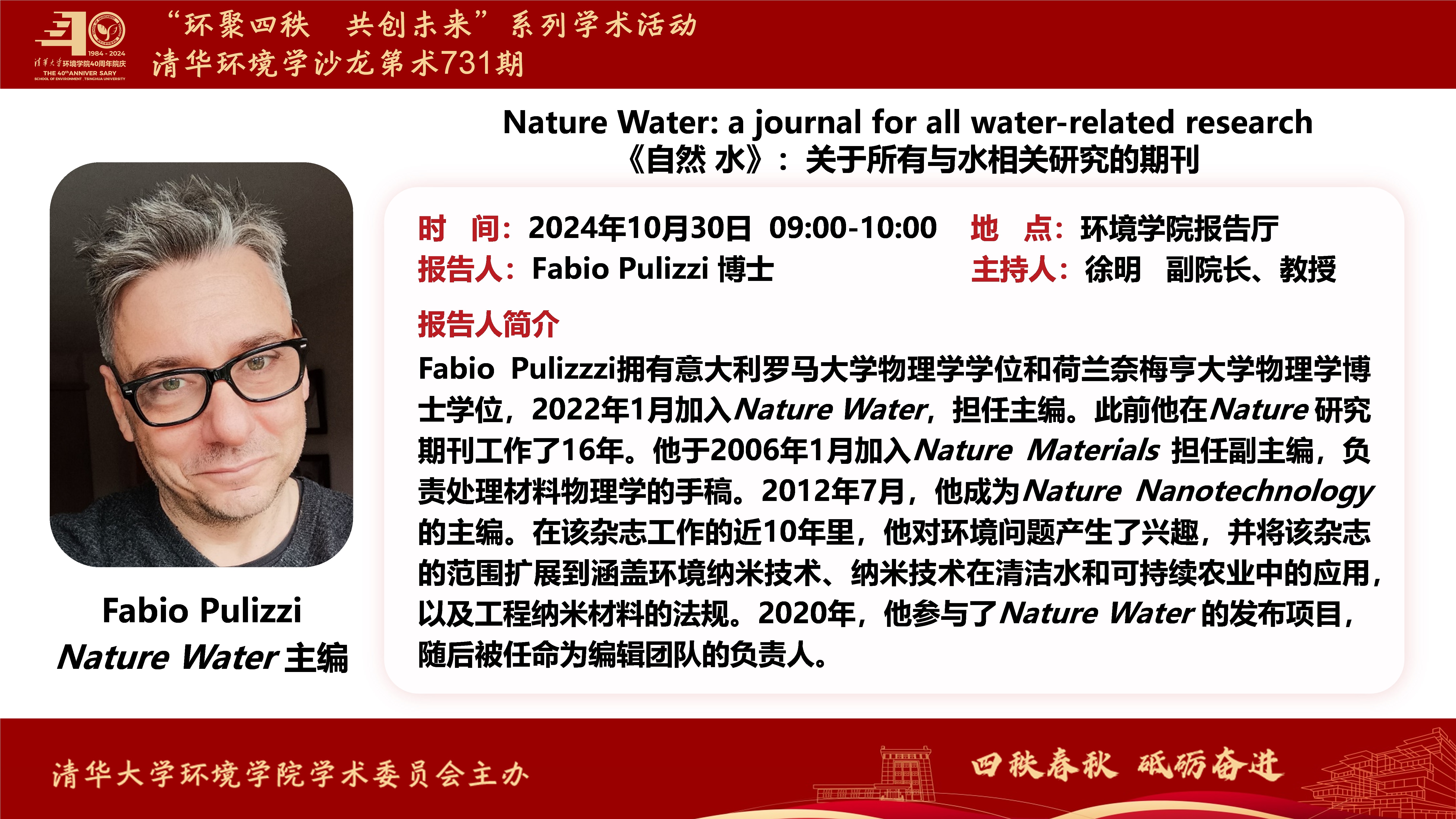 报告人:Fabio Pulizzi 博士,Nature Water 主编
