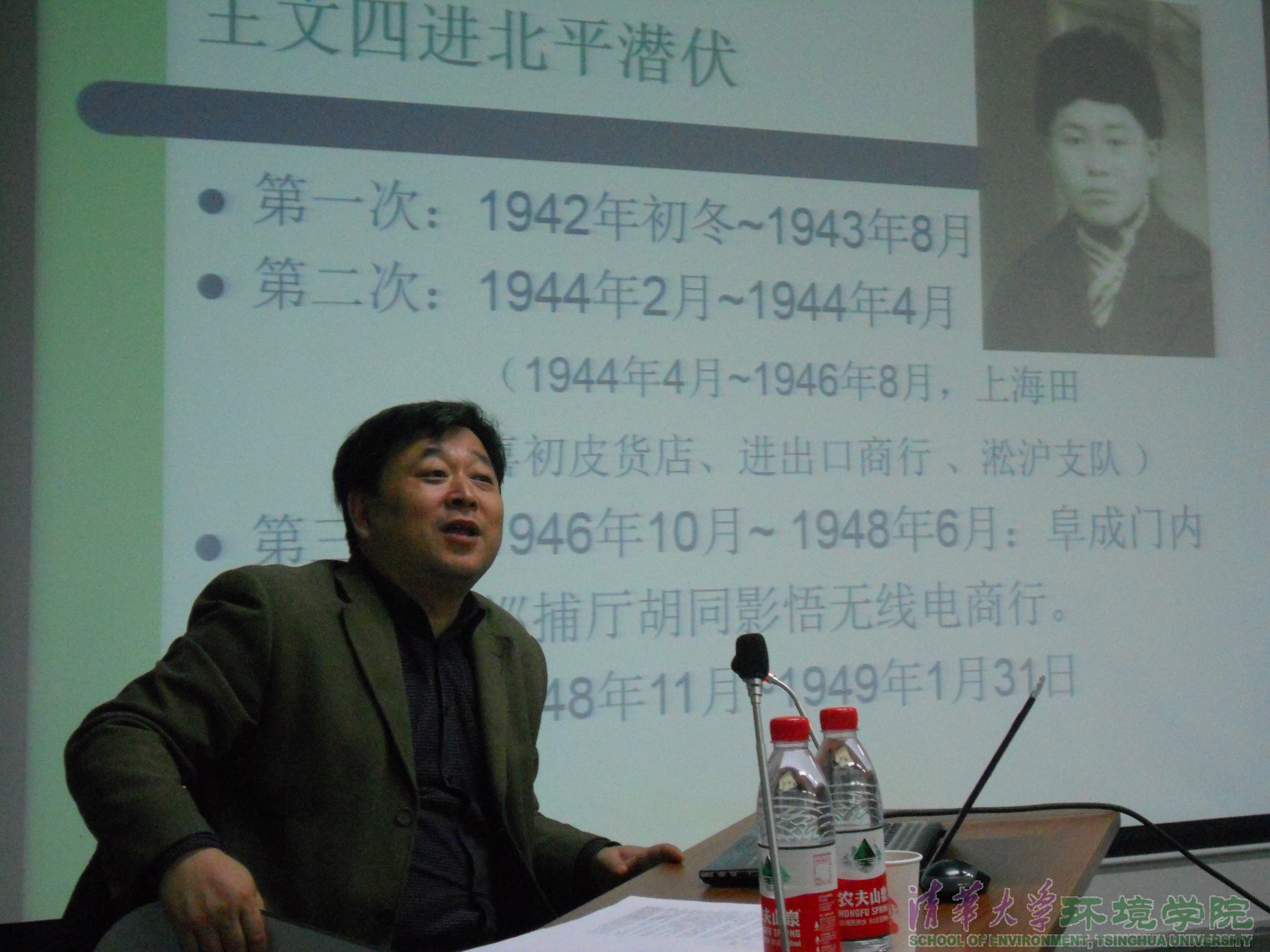 为了使党员、团员更加深入地学习我党的历史,了解新中国成立前我党所走过的艰苦道路,2013年3月27日晚7时,由MK官网环研五党支部在环境节能楼119会议室主办了党史主题系列报告第一场:《真实的潜伏——中共北平地下斗争揭秘》。当晚,北京市委党史研究室宣传教育处处长刘岳同志受邀,为环境学院的同学们还原历史原貌。本次报告由环境学院党委副书记刘建国同志主持。