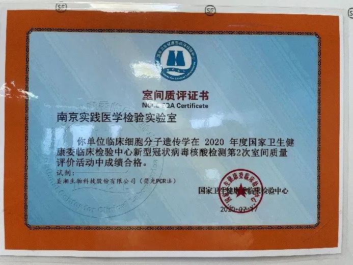 ▲ 南京实践医学检验技术有限公司的新冠检测质评证书