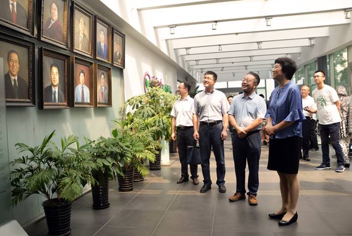 最后,陈旭一行随环境学院院长贺克斌、院党委副书记席劲瑛等人参观了环境学院院士墙。贺克斌向陈旭介绍院士墙的来源与钱易、郝吉明、曲久辉等各位院士的情况,并表示院士墙展现了环境学院浓厚的科研学术氛围,将不断激励环境学子向前辈学习,刻苦钻研,为环境保护事业努力奋斗。