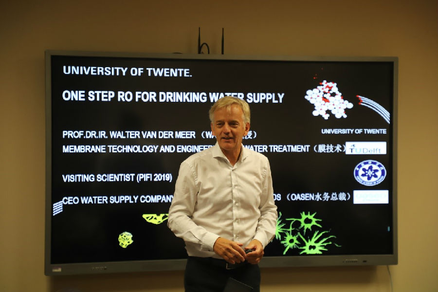 Walter van der Meer 教授是荷兰屯特大学和代尔夫特理工大学教授,同时兼任OASEN水务公司CEO,2018年入选为中国科学院访问教授(PIFI)。Walter教授致力于饮用水处理创新技术理念的研究,研究方向专注于面向未来的水处理技术理念,其提出的一步RO净水技术,经过近十年的研究和实践,已于2018年投厂使用。