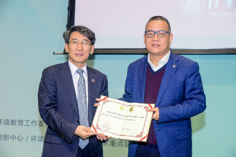 刘毅介绍了吴丰昌院士的简历、主要学术成就及贡献。随后,薛其坤代表清华大学为吴丰昌院士颁发了聘用证书。