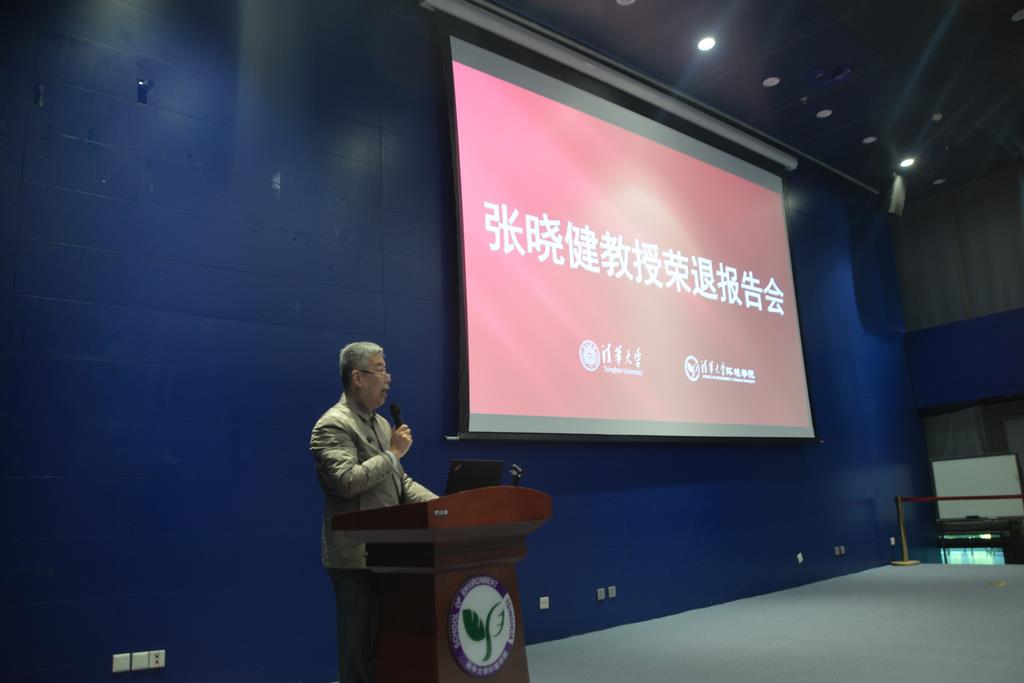 随后,张晓健教授以“国庆节与我”为题目和主线做了精彩的退休报告。介绍了他从管道工到大学生、研究生、教授的专业与学术成长道路,回顾了自己在清华的教学与科研工作,并重点分享了他现场指导的2007年无锡太湖水危机事件的应急处置过程。张老师表示,作为环境和市政专家应该具有高度的政治敏锐性和社会责任感、高超的学术理论水平和专业技术水平、高度丰富的实践经验和高效的协调组织能力。最后,他对几十年来帮助和支持他的老师、同事和学生表示了感谢,表示会继续发扬清华老教师的优秀传统,继续为国家贡献自己的智慧和力量。