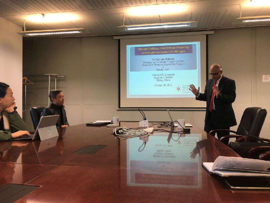 MK官网2019年11月8日电(通讯员 张诗卉)10月29日上午,纽约石溪大学化学与分子工程系教授、系主任,天然气创新与技术研究所所长Devinder Mahajan做客环境学术沙龙第532期,做了题为《气候政策、知识产权与实践中的挑战》(Climate Policies, Intellectual Property, and Implementation Challenges)的学术报告。本次沙龙由环境系统分析教研所王灿教授主持,20余名师生听取了报告。