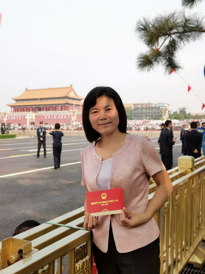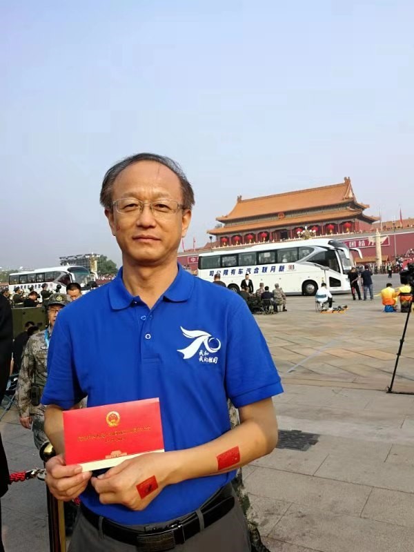 王书肖教授激动地说:“当70响礼炮响彻云霄,当全场数万人齐唱国歌,当五星红旗冉冉升起,我不由热泪盈眶,真正感受到与祖国同呼吸、共命运!习近平总书记讲话鼓舞人心,让我记忆深刻的是那句‘今天,社会主义中国巍然屹立在世界东方,没有任何力量能否撼动我们伟大祖国的地位,没有任何力量能否阻挡中国人民和中华民族的前进步伐’!阅兵式更是震撼人心,每一个方队走过,都让我觉得热血沸腾,每一列先进武器通过,都让我真正感受到祖国的强大,激动之情难以言表,唯有拼命地鼓掌、拼命地挥动国旗。有幸身为中华儿女,有幸生于这伟大的时代,为了祖国更美好的明天,不忘初心、牢记使命,继续奋斗!”