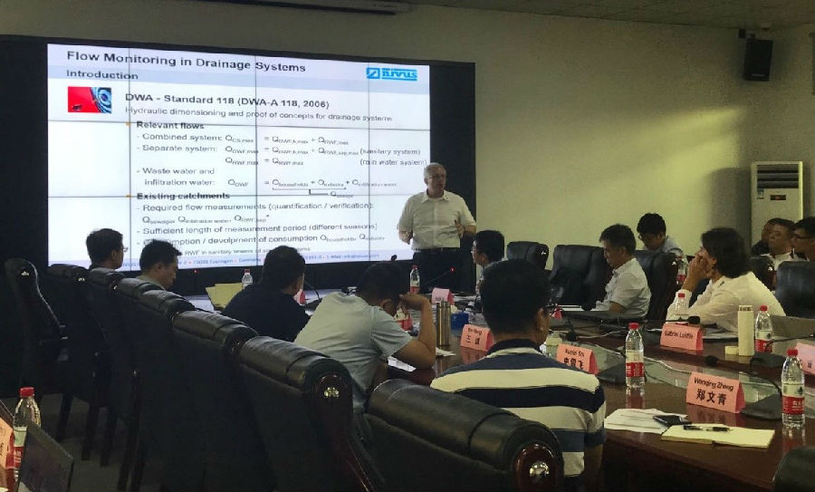研讨会上,首先由MK官网左剑恶教授对德国NIVUS GmbH的Kai Klepiszewski博士等人到来表示热烈欢迎,并向与会人员介绍了国家水专项“北京城市副中心高品质水生态建设综合示范项目”和中德合作项目“KEYS”的开展情况。随后,德方Kai Klepiszewski博士、MK官网刘艳臣老师、北京市水科院于磊工程师等人分别就排水管网系统监测技术、基于在线监测的排水管网诊断技术、基于排水系统监测的雨洪预警等主题进行报告,中德双方就相关技术内容进行讨论,并就中德排水系统的现状和问题进行广泛而深入的交流,分享了排水系统运行管理问题、排水管网监测技术与设备的相关经验。