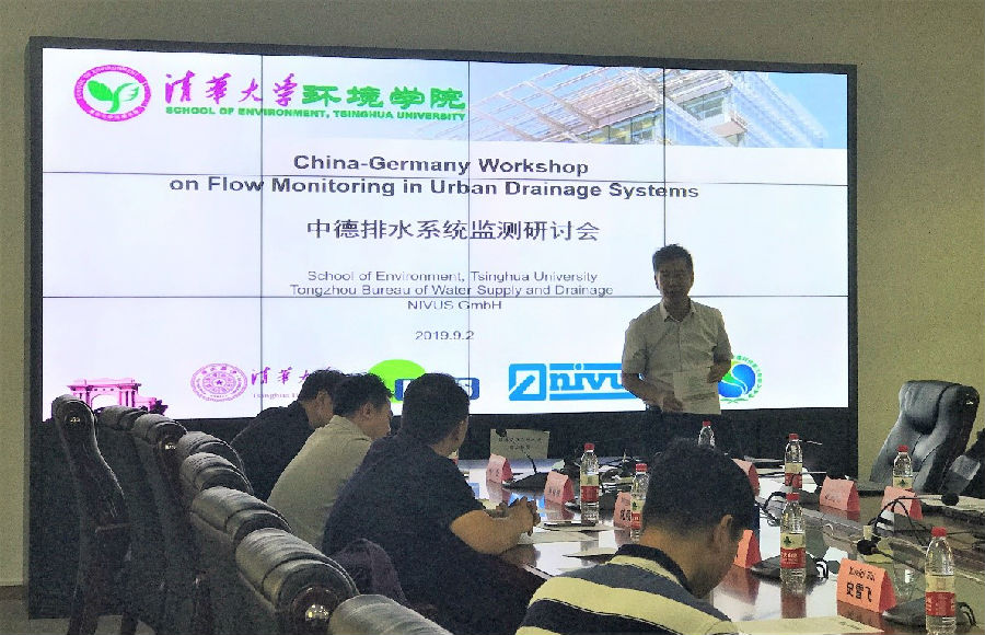 MK官网2019年9月5日电(通讯员 程昭)9月2日,中德排水管网监测研讨会在北京市通州区海绵办多媒体会议室顺利召开。此次会议依托国家水专项项目“北京城市副中心高品质水生态建设综合示范项目”和中德合作项目“SMART TECHNOLOGIES FOR SUSTAINABLE WATER MANAGEMENT IN URBAN CATCHMENTS AS KEY CONTRIBUTION TO SPONGE CITIES” (KEYS),由清华大学、北京市通州区供排水事务中心和德国NIVUS GmbH共同组织举办。会议由MK官网左剑恶教授和刘艳臣副研究员共同主持,北京市通州区供排水事务中心、通州区潞城水务二所、德国NIVUS GmbH等单位领导和相关人员出席会议。来自于上海市奉贤区水务局、北京市水科学技术研究院、上海市政规划设计研究院、天津市市政工程设计研究院、清华大学、同济大学、北京建筑大学等近20家企事业单位50余人参加此次研讨会。