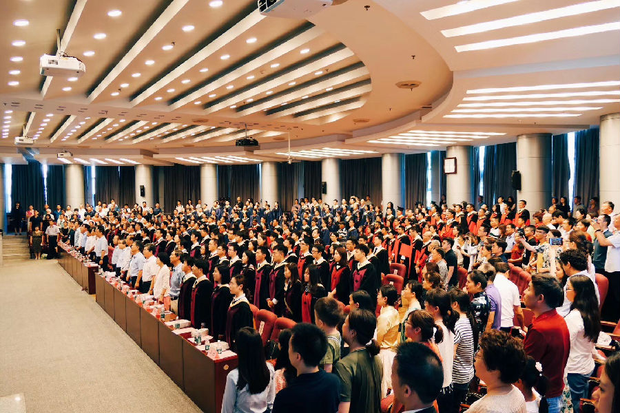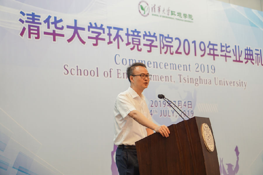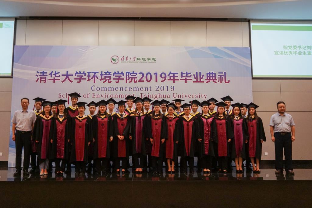 院党委副书记席劲瑛首先通报了2019年本科生、研究生毕业情况。2018年8月至2019年7月,环境学院共有86名本科生(包括1名国际学生)毕业,其中49人获得环境工程、18人获得给排水科学与工程、15人获得环境工程(全球环境国际班)学士学位;共有200名研究生(包括22名国际学生)毕业,其中 66 人获得工学博士、49人获得工学硕士、18 人获得工程管理硕士学位。刘毅宣读了2019年获得北京市优秀毕业生、清华大学优秀和优良毕业生、清华大学优秀毕业论文奖和环境学院优秀毕业生的本科生和研究生名单,并与贺克斌一起和优秀毕业生们合影留念。