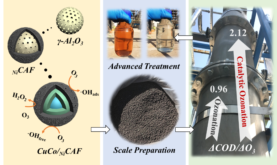 图2 从实验室设计、机理研究、规模制备到实际废水深度处理应用