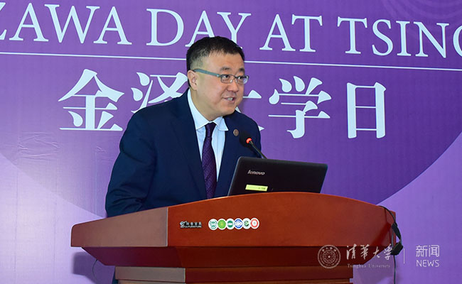 杨斌在致辞中欢迎金泽代表团的到来,并介绍了清华大学的历史沿革、全球战略的实施等情况,对两校积极开展合作交流表示赞赏,并期待以后有更加深入的合作。