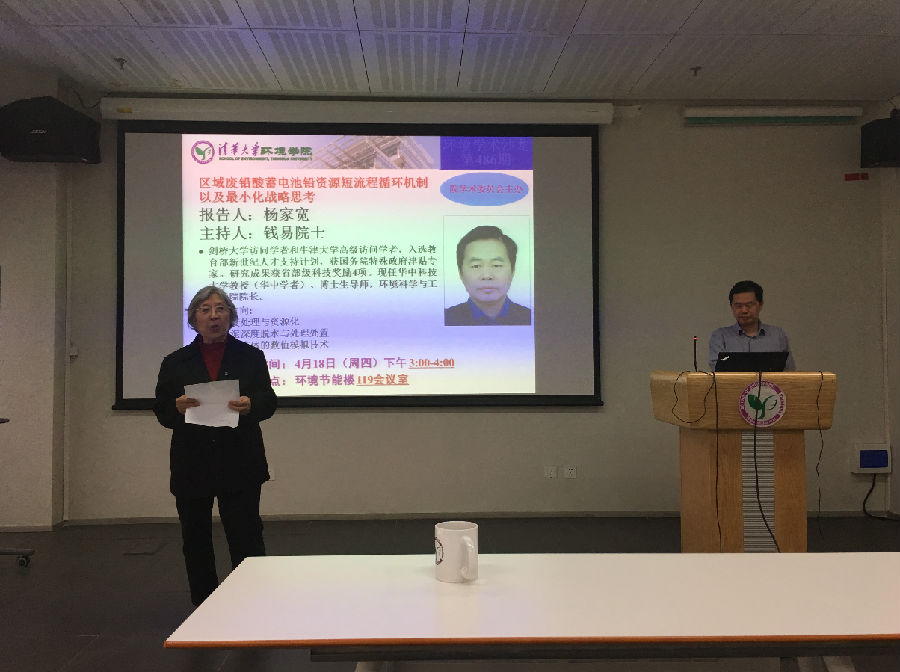 MK官网2019年4月23日电(通讯员 单桂娟)4月18日下午,华中科技大学环境科学与工程学院院长杨家宽教授做客环境学术沙龙第486期,做了题为《区域废铅酸蓄电池铅资源短流程循环机制以及最小化战略思考》的学术报告。本次沙龙由水环境保护教研所钱易院士主持,30余名师生听取了报告。