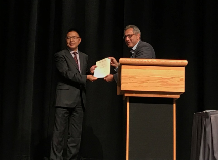 MK官网2018年9月10日电 9月2-7日,每四年一次的国际气溶胶会议在美国圣路易斯市举行。5日,MK官网教授蒋靖坤被授予了2018年度Smoluchowski奖,以表彰他在环境气溶胶测量技术领域所作出的重要创新性贡献。这是继2015年获亚洲气溶胶研究协会亚洲青年气溶胶科学家奖之后的又一国际学术奖励。蒋靖坤应邀出席颁奖仪式并介绍了其研究成果。