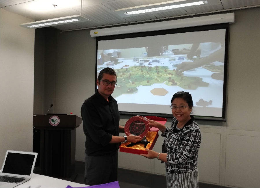 Garcia博士首先通过展示不同的森林案例,与在座的师生们探讨 “森林”的定义。同一片景观地在不同国家对森林的定义下,呈现出不同的结论。在热烈讨论下,听众们赞同对“森林”的定义可以是面积大于0.5公顷,树木高度大于5m,森林覆盖度大于10%的景观地。全球总共134亿公顷的土地,其中40亿公顷是森林覆盖,而这40亿公顷中,14亿公顷为保护地。全球的粮食生产地是15亿公顷,面积几乎与森林保护地相当。在这样的情形下,生物多样性的变化格局值得全球关注。在生物多样性模型的建立中,涉及到三个尺度:现实性、准确性和普遍性。Garcia博士课题组在非洲刚果盆地的研究围绕当地土著民的生计活动与森林生物多样性保护之间的矛盾,综合考虑现实性与普遍性,通过博弈游戏建立起生物多样性未来变化格局的认知。通过一系列的博弈模型,让当地土著民理解生态过程以及其他利益相关者的行为,让管理者与土著民达成共识,做出更明智的决策。