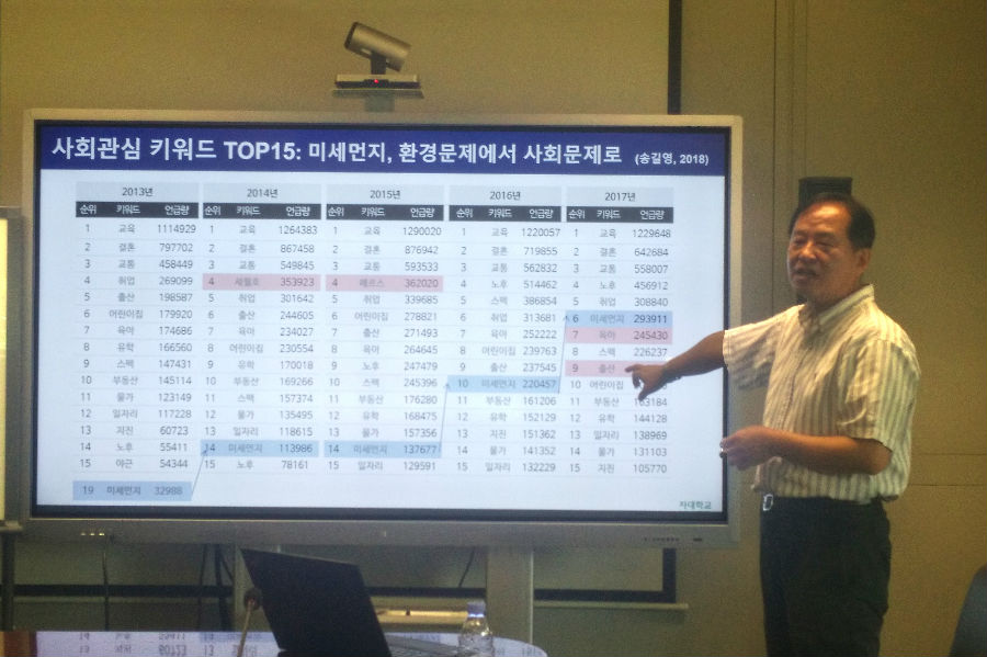 MK官网2018年05月24日电(通讯员 乔晓慧)5月24日上午,韩国梨花大学教授Yong Pyo Kim做客环境学术沙龙第422期,做了题为《根据气溶胶的化学组分、粒径分布和混合状态估算气溶胶的光学性质》(Estimation of aerosol optical properties based on the chemical composition, size distribution, and mixing types of aerosols)的学术报告。本次沙龙由大气污染控制教研所蒋靖坤教授主持,20余名师生听取了报告。