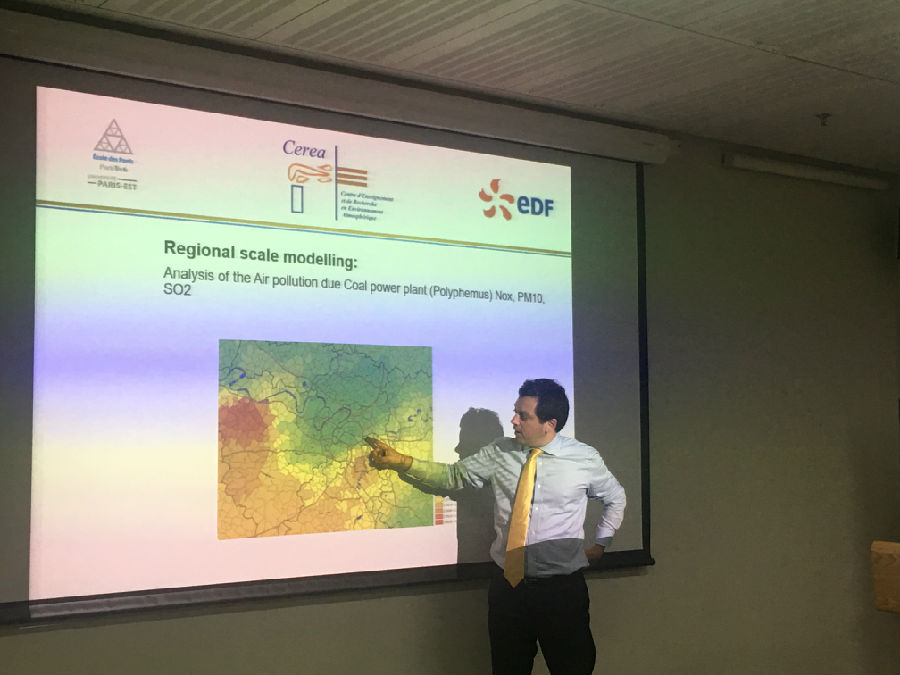 MK官网2018年5月21日电(通讯员 梁馨予)5月21日下午,法国大气环境教学研究中心(CEREA)主任Pietro Bernardara做客环境学术沙龙第416期,做了题为《大气模拟:能源生产,能源服务和空气质量》(CEREA and EDF R&D: Modelling the Atmosphere: Energy Generation, Energy Services and Air Quality)的学术报告。本次沙龙由大气污染控制教研所吴烨教授主持,20余名师生听取了报告。