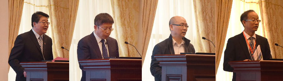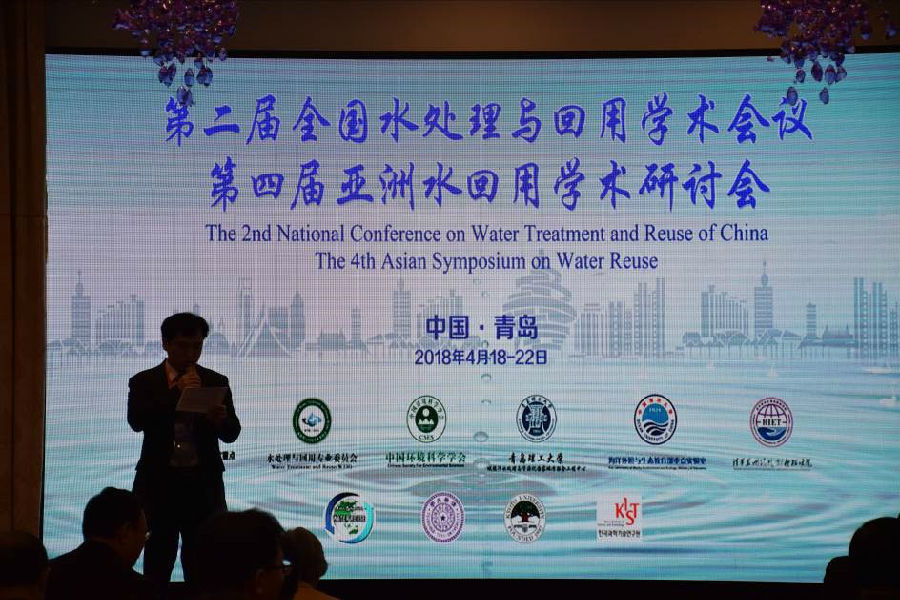 青岛理工大学党委书记/校长王亚军、中国环境科学学会秘书长王志华、生态环境部水环境管理司司长张波、水处理与回用专业委员会主任胡洪营致辞