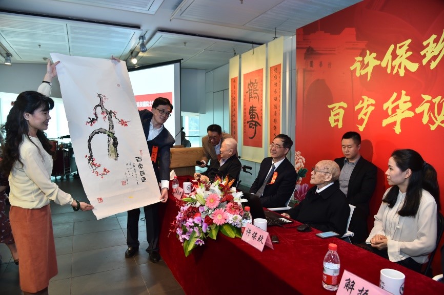 MK官网2018年4月30日电(通讯员 高晓娟、陈超)4月29日,清华大学迎来第107个校庆日,百花争芳、万木逢春的清华园里随处可见从天南海北返回母校的昔日学子。在环境学院院馆中意环境节能楼,一场特别的活动在上午10:00拉开帷幕——许保玖先生百岁华诞贺寿会。许保玖先生及其家属,清华大学党委常务副书记、副校长姜胜耀,原全国政协环资委副主任、原国家环保总局局长、国家气候谈判特别代表解振华,原城建环保部部长叶如棠,生态环境部副部长、九三学社中央副主席黄润秋,原清华大学党委书记方惠坚,清华大学建筑学院吴良镛院士等出席活动。
