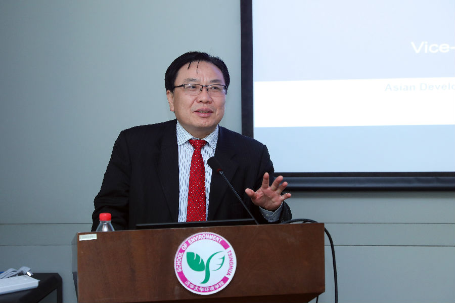 随后,张文才先生为清华师生作了题为《亚太地区经济合作的现状与未来》的学术报告。报告由环境学院院长贺克斌主持报告,来自清华不同院系的五十余名同学听取了报告。