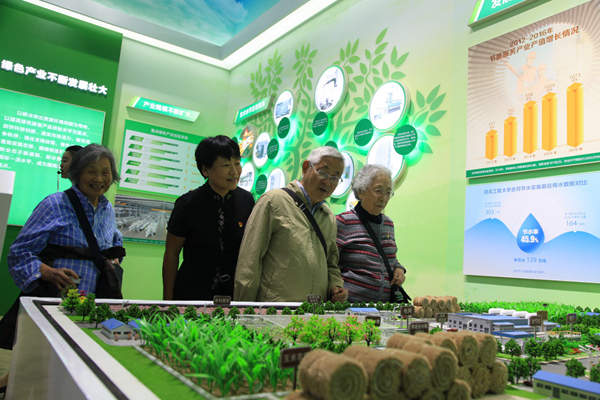 整个展览分为10个主题展区和1个特色体验区。在 “绿水青山就是金山银山,迈入社会主义生态文明新阶段”展区,集中展示了党和国家在生态文明建设方面的一系列重大制度、重大行动、重大工程、重要成果。环境学院的师生们驻足一个个展板和模型前仔细观看,无不为我国生态环境领域的巨大变化感到骄傲和自豪。大家深刻感受到,党和国家坚持把生态文明建设摆在全局工作的突出地位,系统推进生态文明建设重大改革,用绿色发展新理念引领经济社会发展。作为清华环境人,大家从事的研究工作将为国家的方针政策、法律法规、重点工程提供技术支持,所肩负的责任重大,使命光荣。