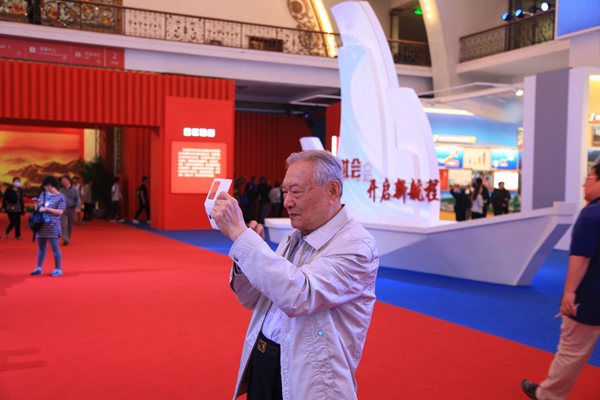 原环境系首任系主任井文涌认真记录展览内容