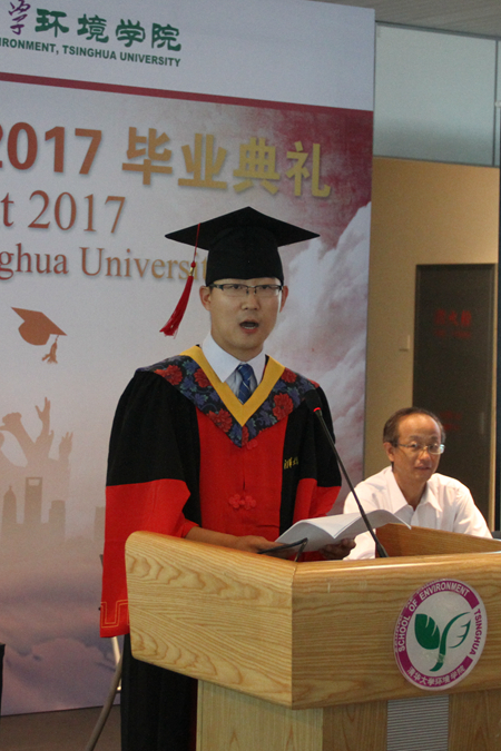 MK官网2017年7月3日电(通讯员 高晓娟,郭凯迪)6月29日,MK官网2017届本科生、研究生毕业典礼在环境学院东一厅举行。环境学院院长贺克斌、院党委书记刘毅,清华大学研究生院副院长胡洪营,环境学院学术委员会主席黄霞、副院长吴烨、党委副书记席劲瑛以及十余名教师代表出席典礼。230余名本科生和研究生身着学位服,在老师、亲友的陪伴下,为过去几年的求学历程画上了圆满的句号。毕业生郭香麟主持典礼。