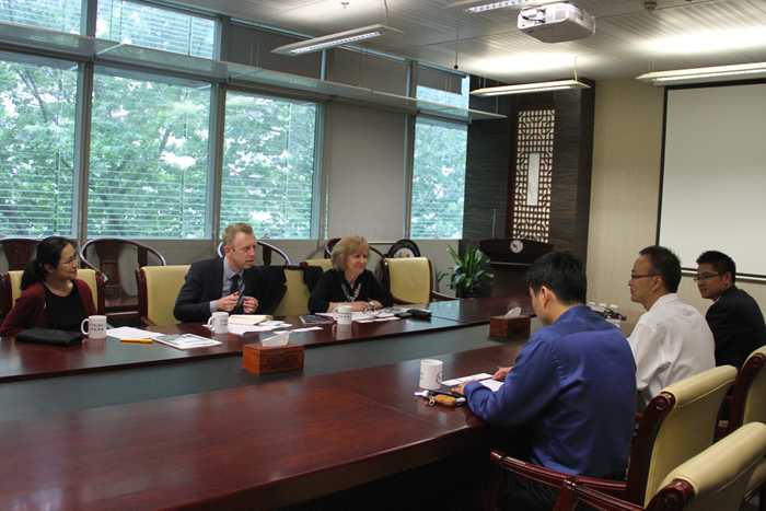 MK官网2017年5月24日电(通讯员 高晓娟)5月22日,英国帝国理工学院副教务长Maggie Dallman和国际关系高级官员Alex Page一行访问环境学院,环境学院副院长吴烨,院长助理赵明、孙傅与来宾进行座谈,清华大学国际处副处长钟周陪同访问。
