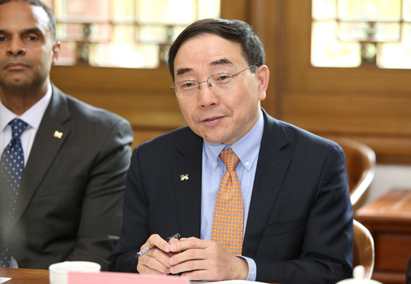 薛其坤介绍了清华大学发展历史及国际化人才培养举措,他表示清华大学与密西根大学早在2005年就签署了合作协议,多年来两校在学生交换、学术交流以及环境、机械工程等领域开展了多项紧密合作,取得了突出的成绩,清华大学将继续用扎实的工作深入推进国际合作,支持水技术国际协同实验室的建设。