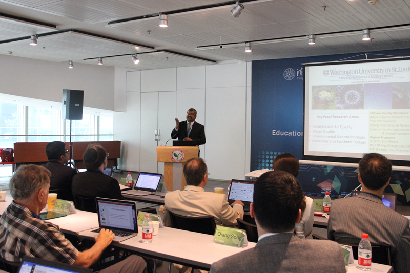 在活动开幕式上,清华大学国际合作与交流处副处长孟波向来宾介绍了清华大学的国际合作概况。圣路易斯华盛顿大学国际事务协理副校长Pratim Biswas介绍了该校的麦克唐纳学院全球能源与环境合作伙伴项目(McDonnell Academy Global Energy and Environment Partnership),并回顾和展望了清华与圣路易斯华盛顿大学的合作。环境学院副院长吴烨与工程与应用科学学院院长Aaron Bobick分别介绍了两院的情况。环境学院院长助理赵明主持开幕式。
