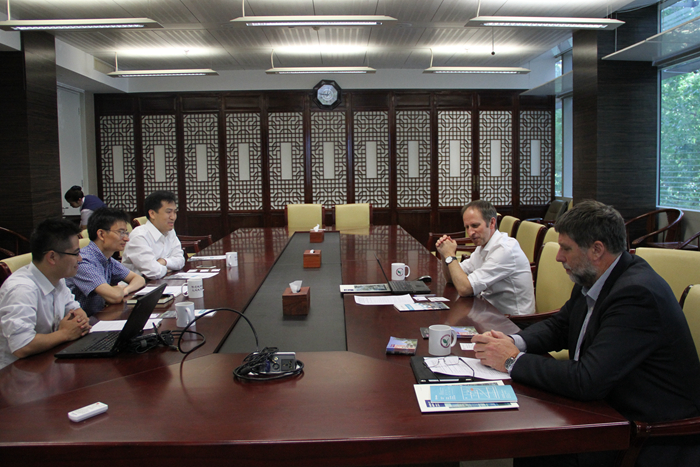刘书明代表学院对来宾表示欢迎。院长助理孙傅向来宾介绍了环境学院的概况,特别是与国外大学及企业开展的国际合作项目。地下水与土壤环境教研所副教授侯德义、大气污染与控制教研所副教授刘欢分别与来宾交流了各所的研究概况。Flint教授与Taylor教授介绍了曼彻斯特大学相关学科的研究概况。随后,双方围绕联合研究、学生交流等内容进行了讨论,并表示希望在未来建立起实质性合作。座谈会后,两位来宾还参观环境学院实验室和公共研究平台。