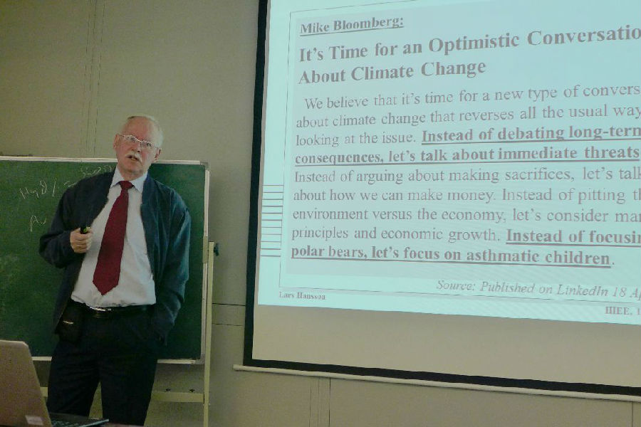 MK官网2017年4月27日电?(通讯员 李霄)4月27日上午,瑞典隆德大学国际产业环境经济研究院(International Institute for Industrial Environmental Economics,IIIEE)教授拉尔斯·汉森(Lars Hansson)做客环境学术沙龙第335期,作了题为《环境政策和空气污染的经济学分析》(Economic Analyses of Environmental Policy and Air Pollution)的学术报告。本次沙龙由环境管理与政策教研所石磊副研究员主持,40余名师生听取了报告。
