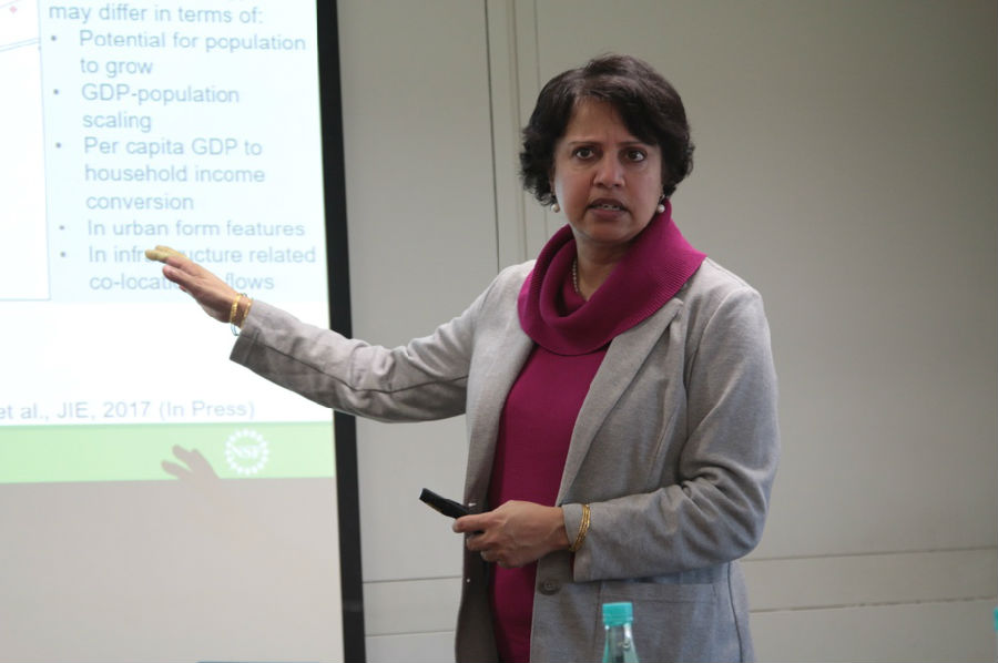MK官网2017年03月17日电(通讯员 刘天石)3月14日下午,明尼苏达大学生物产品与生物系统工程系教授Anu Ramaswami做客环境学术沙龙第329期,作了题为《重塑可持续健康城市的基础设施》(Reinventing Infrastructure for Sustainable Healthy Cities)的学术报告。本次沙龙由环境管理与政策教研所石磊副研究员主持,40余名师生听取了报告。