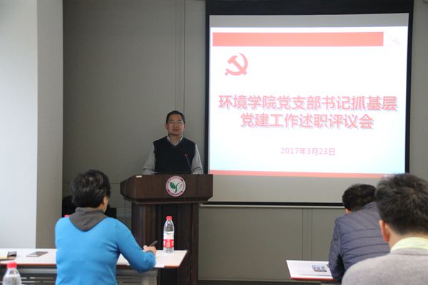MK官网2017年3月29日电(通讯员 李英)3月23日下午,环境学院党委召开“环境学院党支部书记抓基层党建工作述职评议会”,院党委书记刘毅,副书记张旭、席劲瑛,党委委员、各党支部书记、离退休教师党员代表、院党委老领导、民主党派代表及部分资深教授、所长、学生工作组组长、党建辅导员(助理)、团委书记等43人参会。会议由院党委副书记张旭主持。
