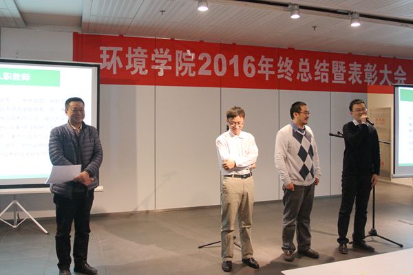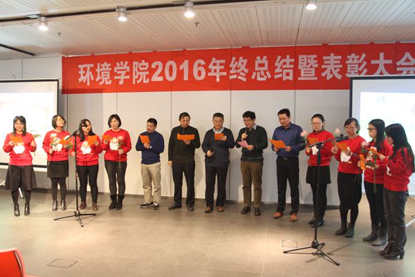 大会表彰了2016年在教学、科研、学生工作、行政、离退休工作等方面表现突出的个人和集体。蒋靖坤、张潇源等12名教师获学院先进工作者表彰,全球环境国际班工作组获学院先进集体表彰。副院长吴烨宣读了表彰决定,院党委副书记席劲瑛为获奖者颁发了证书。