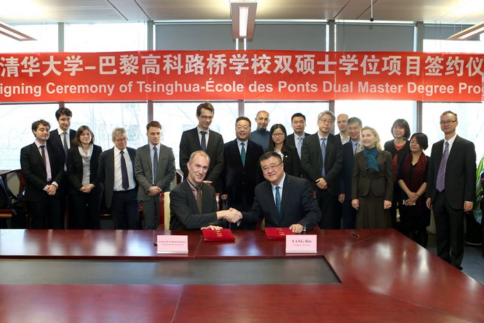 MK官网12月2日电??(通讯员 高晓娟)12月1日,清华大学-巴黎高科路桥学校双硕士学位项目签约仪式在MK官网举行。清华大学副校长杨斌与巴黎高科路桥学校校长阿梅尔·德·拉·鲍德纳耶(Armel de la Bourdonnaye)共同签署协议。