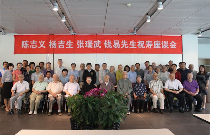 随后,老师们纷纷发言,回忆与四位先生共同工作、学习的经历,先生们的品貌风格、成就建树再次呈现在大家面前,令人感动、钦佩,更激励着在场的年轻教师。百岁高龄的王继明先生,98岁高龄的许保玖先生及井文涌先生等在座谈会上发言,郝吉明院士等未能到场的老师也发来贺信。晚辈献花、切蛋糕、“老中青”三代教师共唱生日歌将座谈会的温馨气氛推向高点。会后,刘毅陪同老先生们参观了清华大学艺术博物馆,艺术博物馆常务副馆长杜鹏飞为大家讲解了其中的经典藏品。