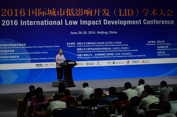 环境学院2016年6月29日电(通讯员 贾海峰)经过长达一年半的精心筹备,2016 国际城市低影响开发(LID)学术大会(International Low Impact Development Conference)于6月27日在北京国家会议中心隆重召开。此次大会由中国土木工程学会水工业分会(CCES CWIS),美国土木工程学会环境与水资源分会(ASCE EWRI)及中国工程院土木、水利和建筑工程学部(CAE DCHAE)联合主办,由清华大学、北京建筑大学及北京大学承办。协办单位包括中国城市规划设计研究院、深圳城市规划设计研究院、北京清控人居环境研究院、江西省海绵城市工程技术中心、中关村海绵城市工程研究院、北京市水科学技术研究院、环境模拟与污染控制国家重点联合实验室、北京清华同衡规划设计研究院等20余家国内外学术研究、产业机构和行业协会;支持单位为住房和城乡建设部,环境保护部,水利部。国内外LID领域的专家学者、政府官员及国际知名咨询公司和生产企业人员共逾千人参会。