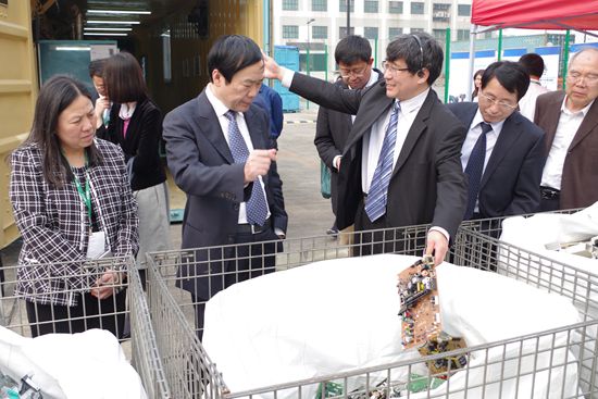 3月31日下午,科技部副部长徐南平前往澳门垃圾焚化中心参观了亚太中心开展的电子废物处理示范工程。该示范工程基于2014年启动的“澳门典型电子废物处理设备应用及后续处理研究”项目,是内地与澳门节能与环保合作框架下的重要成果之一,由国家科学技术部与澳门环境保护局共同资助,项目负责人为亚太中心主任李金惠。李金惠向徐南平一行介绍了废弃办公设备和手机处理工程的情况。澳门环境保护局谭伟文局长、黄蔓荭副局长,澳门中联办经济部副部长级助理徐俊,环境学院郝吉明院士等随同参观。