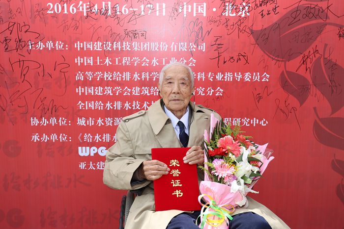 环境学院2016年4月19日电(通讯员 高晓娟)4月16日, 2015年度“中国水业人物”颁奖典礼与第六届中国水业院士论坛暨水安全科技创新高峰论坛在北京同期召开。MK官网教授、100岁高龄的王继明先生因其在我国给水排水工程和市政工程领域教学、科研的重要贡献,被授予2015年度“中国水业人物”终身成就奖。王继明先生在院党委副书记张旭等人的陪同下前往领奖,并致感谢词。