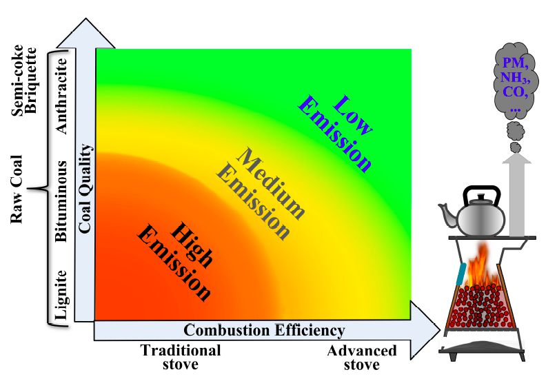 提高民用燃煤质量和燃烧效率而降低一次细颗粒物和二次细颗粒物前体物的排放