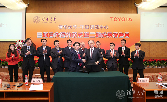 清华大学和丰田汽车公司于2006年3月23日举行了研究中心的成立仪式,并于2011年3月签署了双方第二期五年的框架协议。中心始终致力于双方在环境科学、能源、材料科学以及车辆安全技术领域方面的共同研究,旨在为实现“全球经济、社会的可持续发展”以及“建设和谐富裕社会”做出贡献。在前两期的合作研究中,中心在科学研究和人才培养方面均取得了丰硕的成果:申请了多项专利,发表论文100余篇,多项研究成果已投入实际应用;在人才培养方面,多名本科生、研究生通过实际参与项目,学习到宝贵的项目经验,并顺利获得学位或继续深造的机会。三期合作协议的签署必将进一步加强清华大学与丰田汽车公司的友好合作关系,为中国可持续发展做出更大贡献。