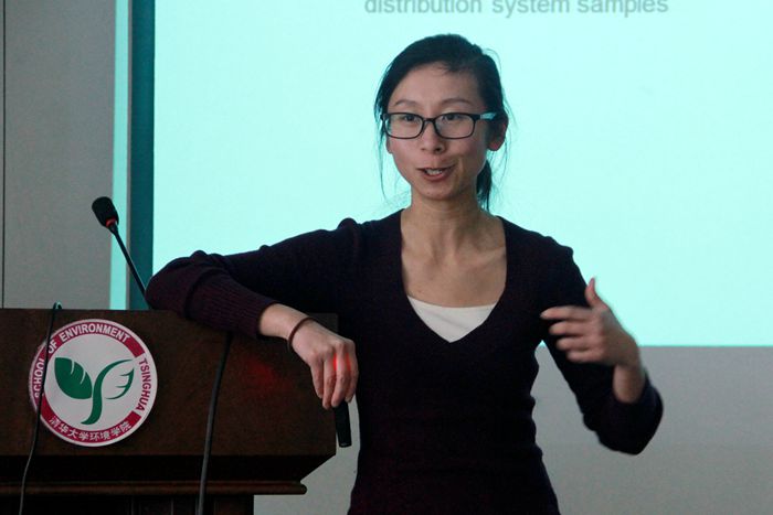 环境学院2016年1月4日电(通讯员 刘博) 1月4日,纽约州立大学水牛城分校助理教授戴宁博士做客环境学术沙龙第271期,作了题为《饮用水及污水中亚硝胺:消毒副产物还是污水污染物?》(Nitrosamines in Drinking Water and Wastewater: Disinfection Byproducts or Wastewater Contaminants?)的学术报告。饮用水安全教研所陈超副研究员主持此次沙龙,20余名师生听取了报告。