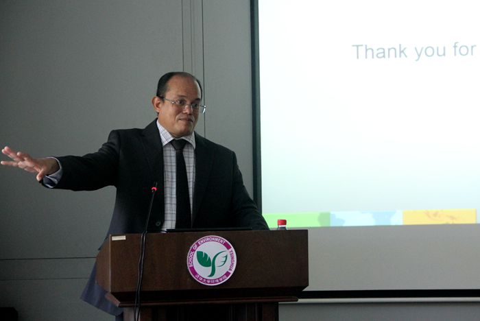罗尔夫·佩耶是环境科学专业博士,毕业于哈佛大学,主要从事海岸带综合管理方面的研究。曾担任塞舌尔前环境和能源部长,现任巴塞尔、鹿特丹、斯德哥尔摩公约联合秘书处执行秘书。罗尔夫·佩耶创建了全球岛屿伙伴关系组织(GLISPA)并参与发起了国际珊瑚礁倡议,还是联合国政府间气候变化专门委员会(IPCC)第三份、第四份评估报告的主要作者。为了表彰Rolph Payet对海洋研究的贡献,他于2007年被推选为皇家地理学会会员。此次访问是应环境保护部部长邀请来中国访问我校主办的巴塞尔公约亚太区域中心。