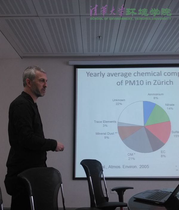 环境学院2015年10月9日电(通讯员 姜婷婷)10月9日上午,瑞士保罗谢勒研究所大气化学实验室副主任安德烈·普雷沃特(Andre Prevot)博士做客环境学术沙龙第252期,作题为《大气颗粒物来源解析》的学术报告。本次沙龙由大气污染与控制研究所蒋靖坤副教授主持,40余名师生听取了报告。