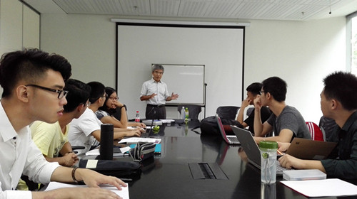 中村民雄教授正在给全球环境国际班讲授《国际环境法概论》?