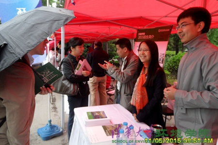 来现场咨询的学生和家长对环境专业表现出了极大的热情,把环境学院展台围得水泄不通,淅沥的小雨丝毫没有影响大家的热情,五百多份招生材料很快就被索要一空。学生和家长主要关心环境专业本身特点、培养方案、毕业去向、报考要求等众多问题,其中,“环境工程(全球环境国际班)”尤为受关注。老师们热情而细致的解答了家长提出的问题,并欢迎学生踊跃报考。