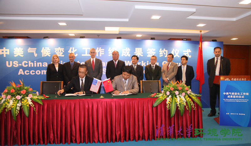 环境学院7月11日电(通讯员 贾海峰)7月8日,中美气候变化工作组成果签约仪式在北京中国科技会堂举行,中国国家发展和改革委员会副主任解振华、美国国务院气候变化特使斯特恩和美国贸发署署长李扎克出席了签约仪式。