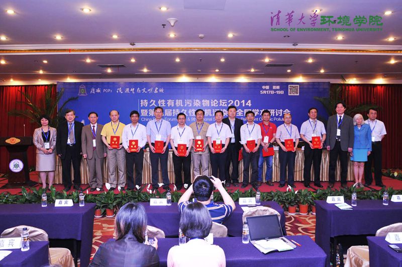 大会开幕式由中国环境科学学会POPs专委会主任、清华大学持久性有机污染物研究中心主任、长江学者特聘教授余刚主持。昆明理工大学副校长王华教授代表大会承办方致欢迎辞,环保部环境保护对外合作中心陈亮主任、中国环境科学学会副理事长兼秘书长任官平、台湾大学环境工程研究所特聘教授蒋本基以及联合国环境规划署高级科学事务官员Heidelore Fiedler博士先后致辞,祝贺论坛隆重开幕并预祝会议圆满成功。中国科学院院士,中国院生态环境研究中心主任江桂斌研究员因其多年来在持久性有机污染物科学研究方面的杰出贡献,荣膺本年度“消除持久性有机污染物杰出贡献奖”。本次论坛适逢POPs专委会换届,在开幕式上陈亮主任和任官平秘书长为与会的第二届POPs专委会委员颁发聘书。